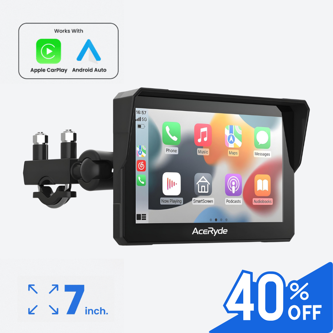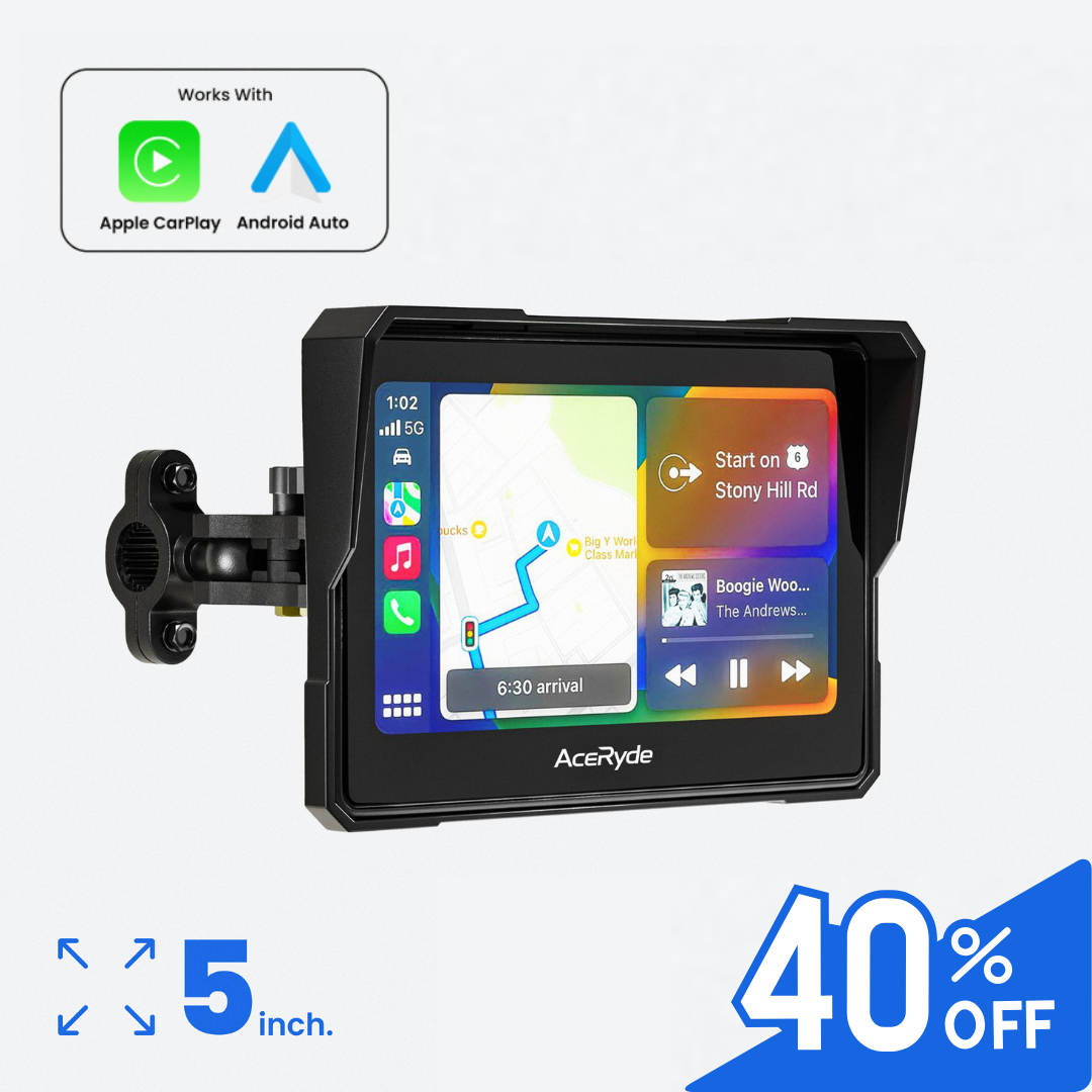 Yes! The AceRyde MX fully integrates Apple CarPlay and Android Auto, giving you seamless access to navigation, calls, music, and voice assistants—all on a touchscreen that works with gloves.